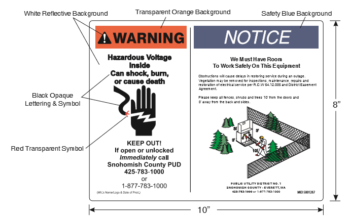 5001287.1 Padmount Warning and Transformer Obstruction Notice Label